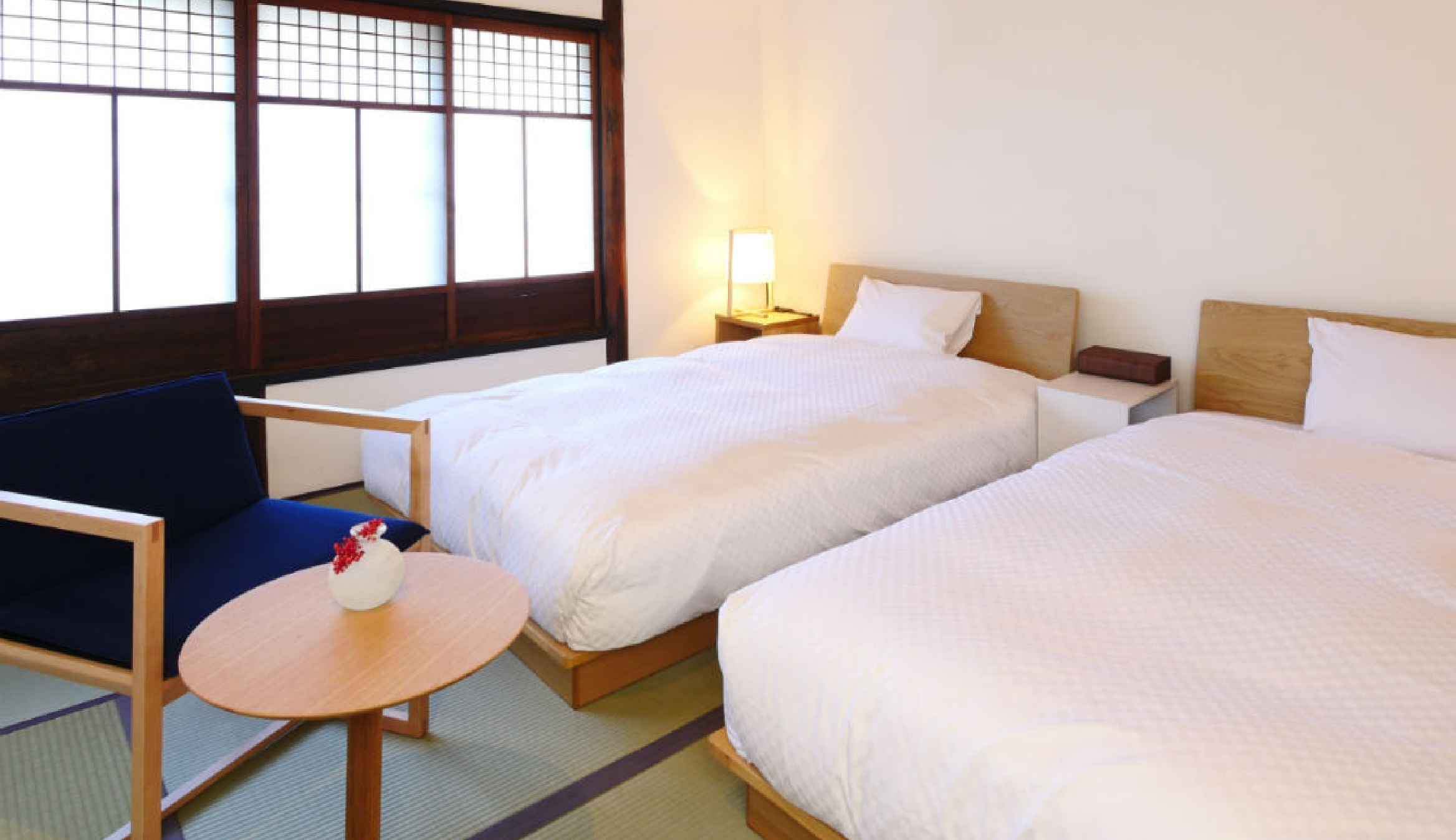 | 客室備品/アメニティ | サータ社製ベッド/バスルーム/高速インターネット回線(WiFi)/冷蔵庫/ミニバー/電気湯沸しポット/ヘアドライヤー/洗浄機能付きトイレ/金庫(一部客室を除く)/加湿器/タオル類/パジャマ/足袋/スリッパ/歯ブラシ/シャンプー/コンディショナー/ボディタオル/ボディソープ/石鹸/スキンケアセット/コットン/綿棒/ヘアブラシ/シャワーキャップ/髭剃り |