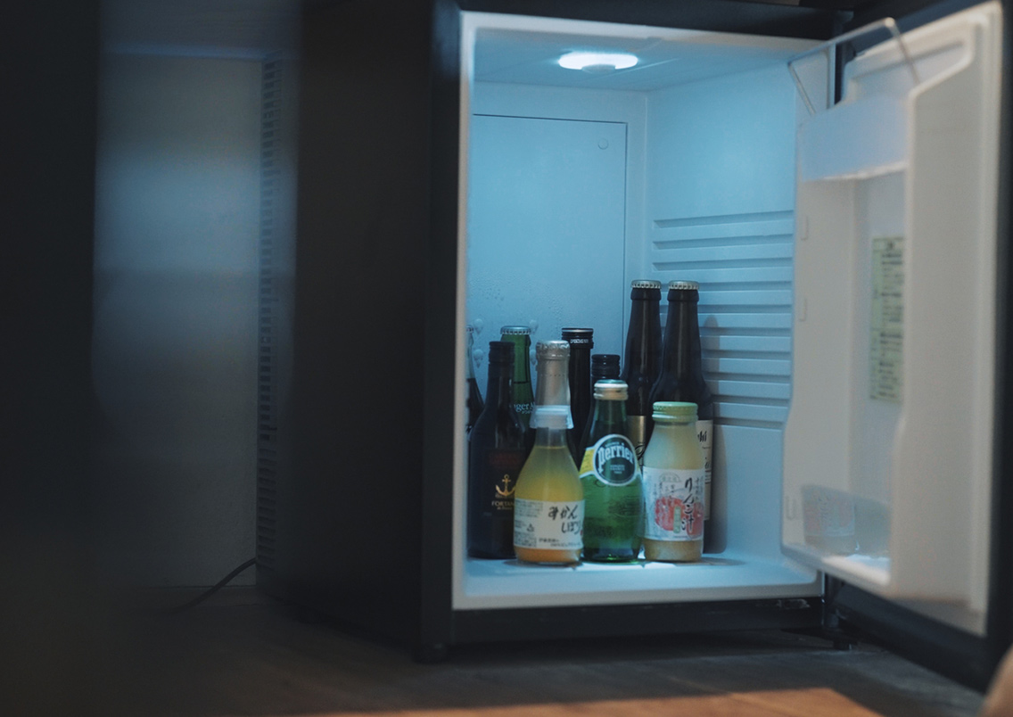 コーヒー、紅茶に加え、ジュースやお酒などをご自由にお飲みいただけるミニバーをご用意しております。こころゆくまでお楽しみください。